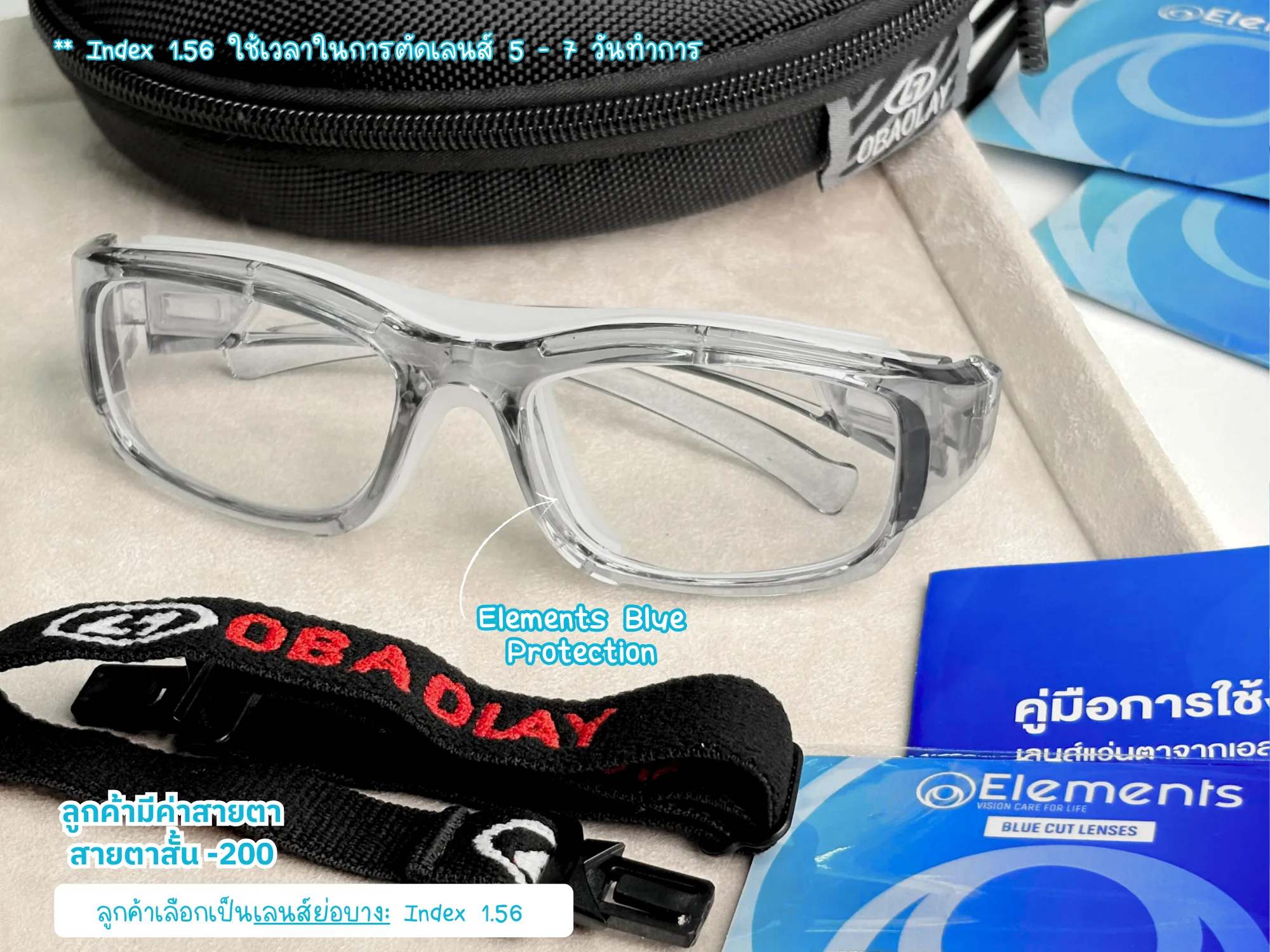 เพื่อแก้ปัญหาสายตาในขณะออกกำลังกาย ลูกค้าได้ทำการปรึกษาทางร้านและเลือกเลือกใช้เลนส์ Elements Blue Protection Index 1.56 ซึ่งมีคุณสมบัติเด่นคือ
