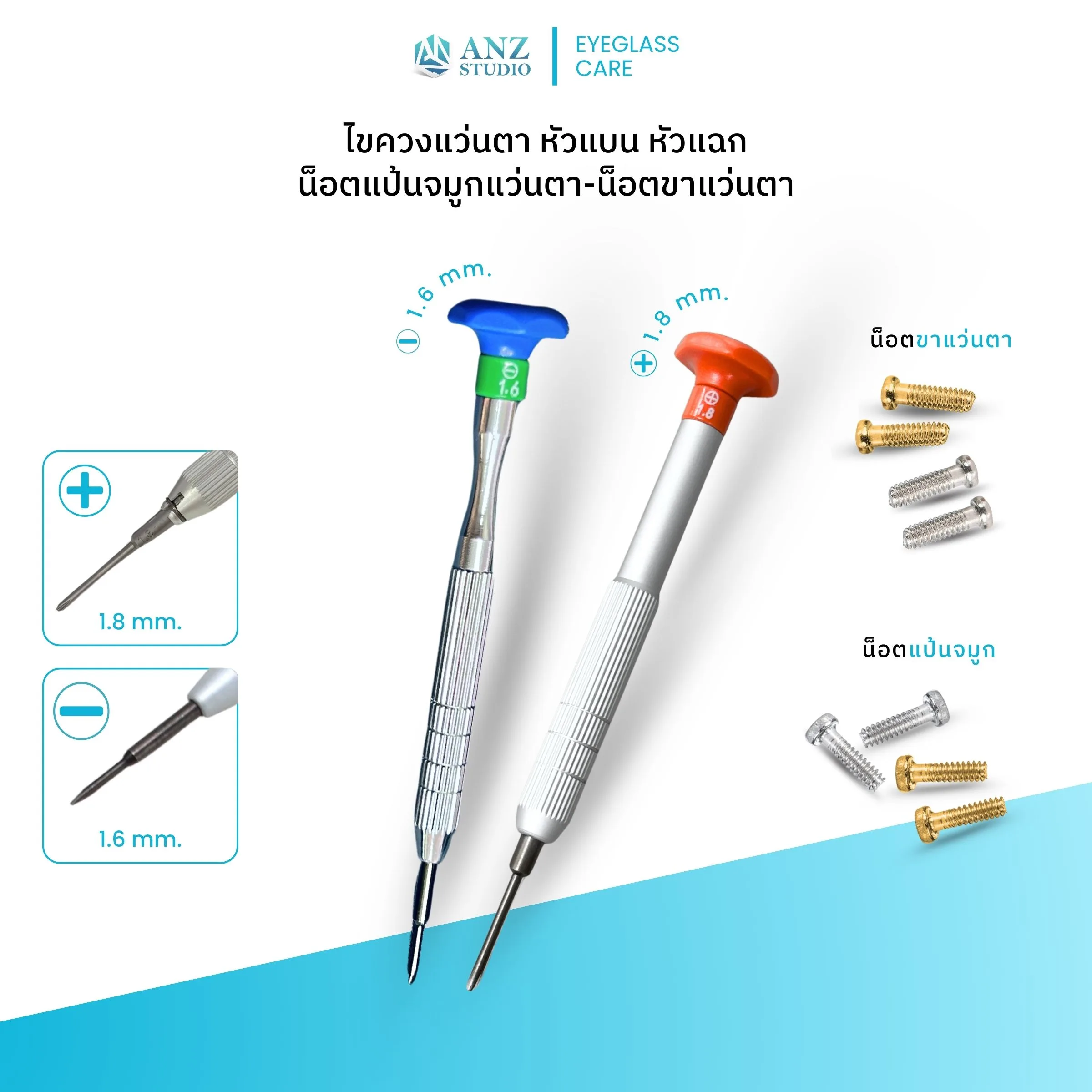 อุปกรณ์ซ่อมแว่นตา ไขควงเล็ก หัวแบน 1.6 หัวแฉก 1.8 / น็อตขาแว่นตา / น็อตแป้นจมูก