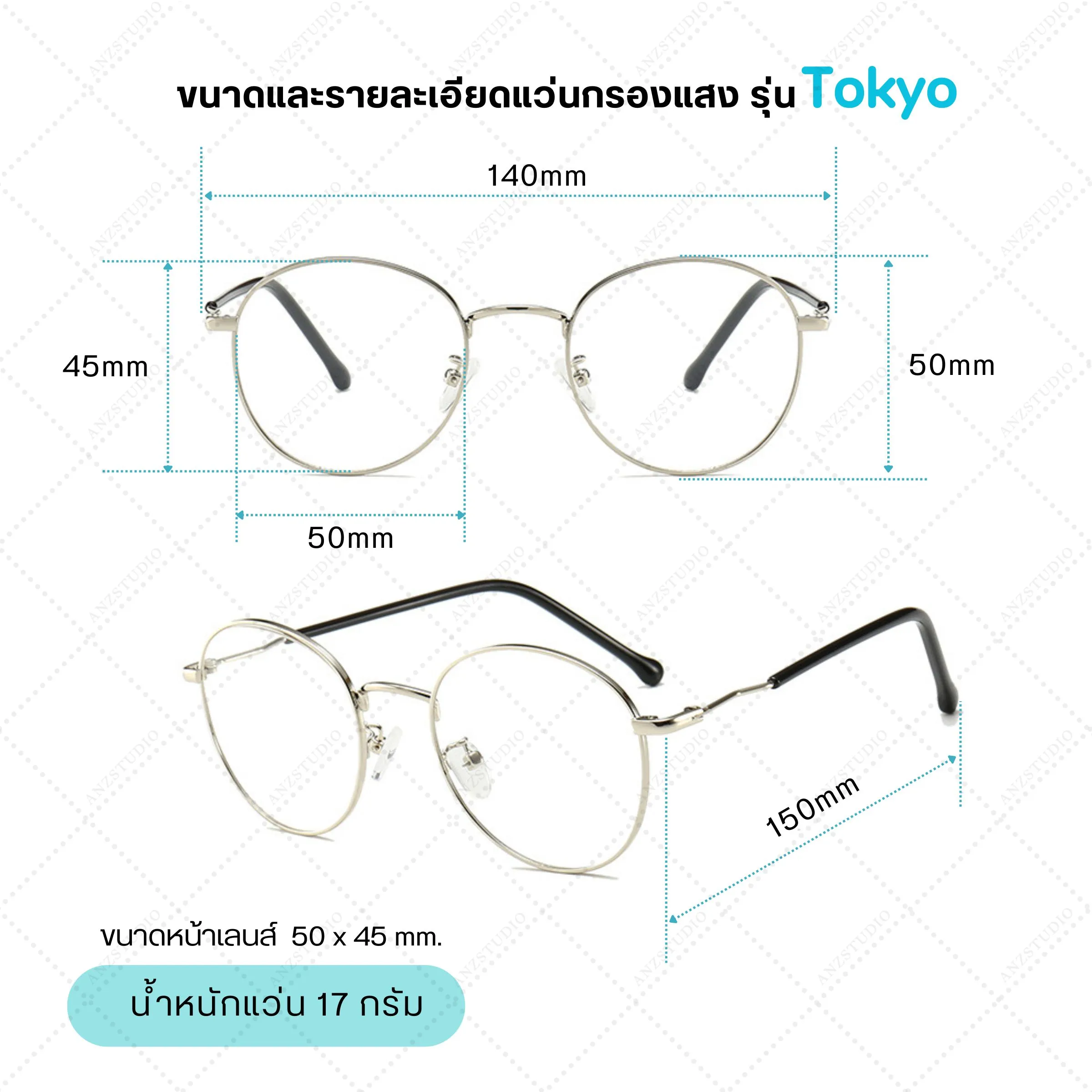 – น้ำหนักแว่น : 17 g.