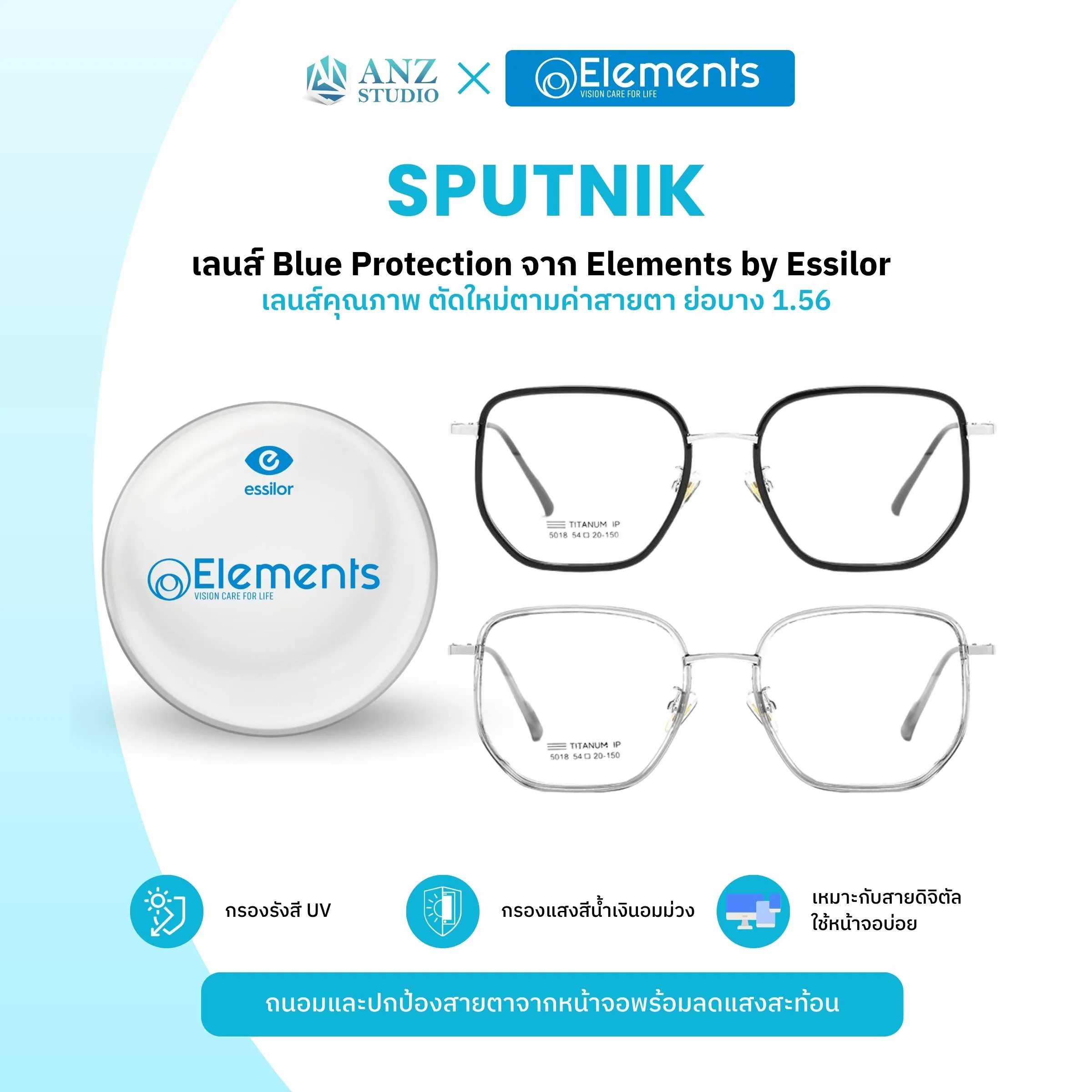 กรอบแว่นตา รุ่น Sputnik ฟรีเลนส์ Elements Blue Protection + ค่าสายตา สั่งตัดใหม่ตามค่าสายตา