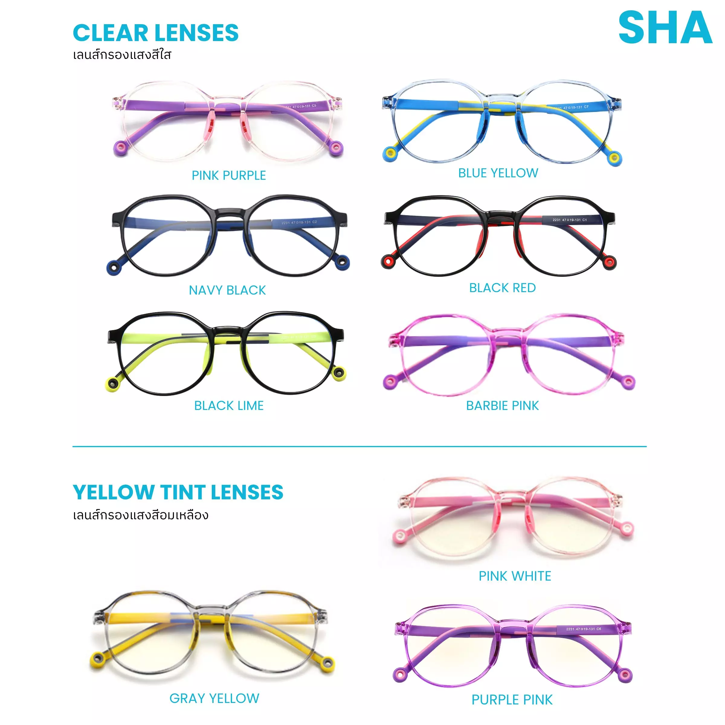 แว่นกรองแสงสีฟ้าเด็ก รุ่น SHA สำหรับเด็กอายุ 3-12 ปี