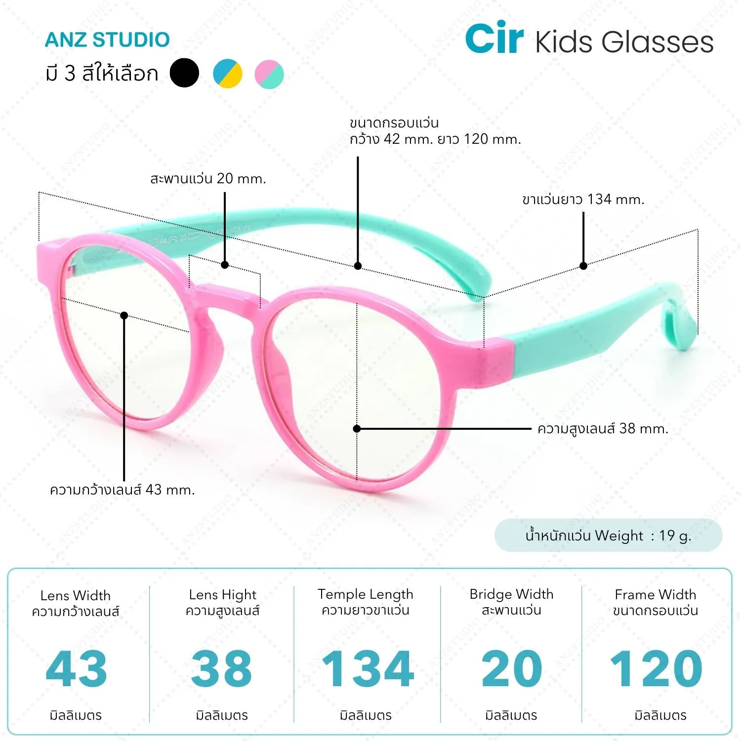 แว่นกรองแสงสีฟ้า ANZ รุ่น Cir สำหรับเด็กอายุ 3-12 ปี