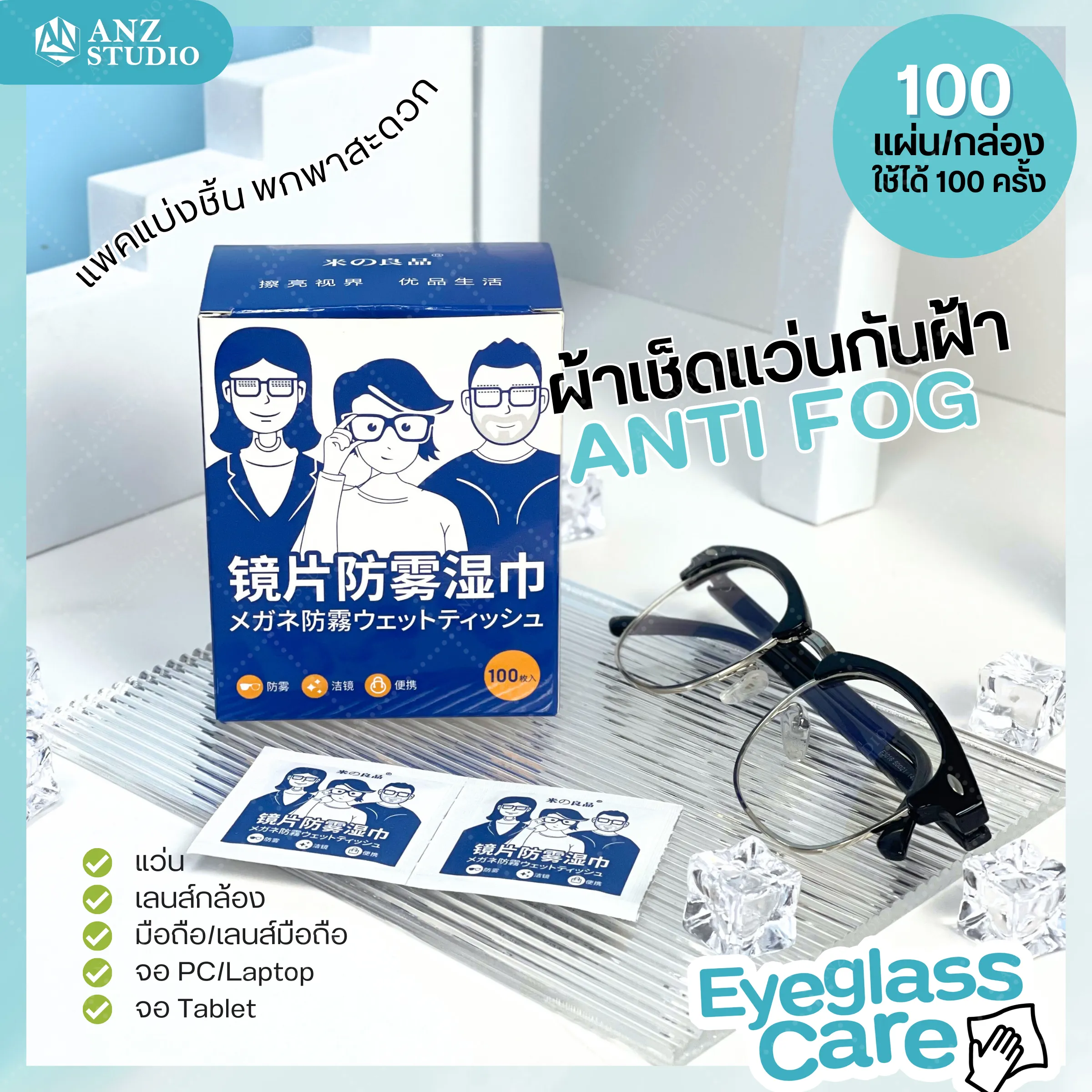 ผ้าเช็ดแว่นกันฝ้า กันไอน้ำ ไอความร้อน-ความเย็น ป้องกันเลนส์ขึ้นฝ้า ด้วยผ้าเช็ดเลนส์ by ANZ Studio