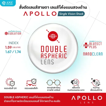 Apollo Double Aspheric Lens เลนส์โค้งแบนสองด้าน ให้เบาและบางเป็นพิเศษ (NanoClean / BluTect Plus)