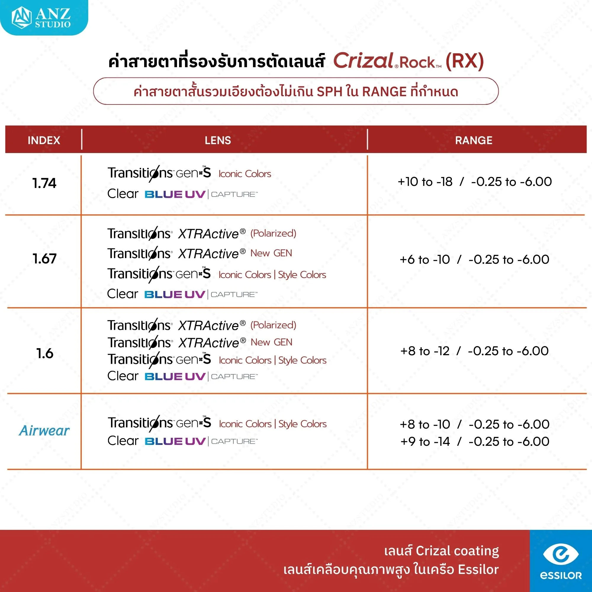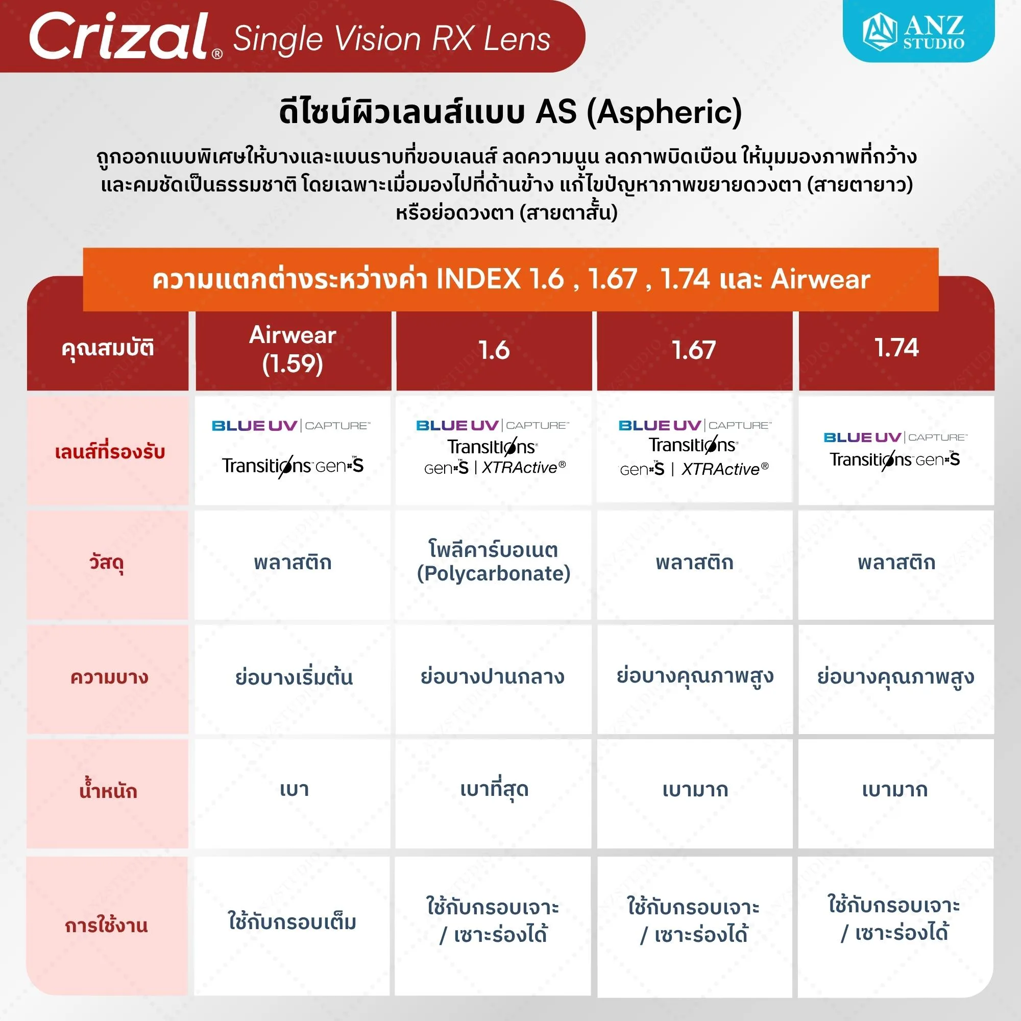 - Crizal Single Vision Rx Lens (สั่งตัดเฉพาะบุคคล)