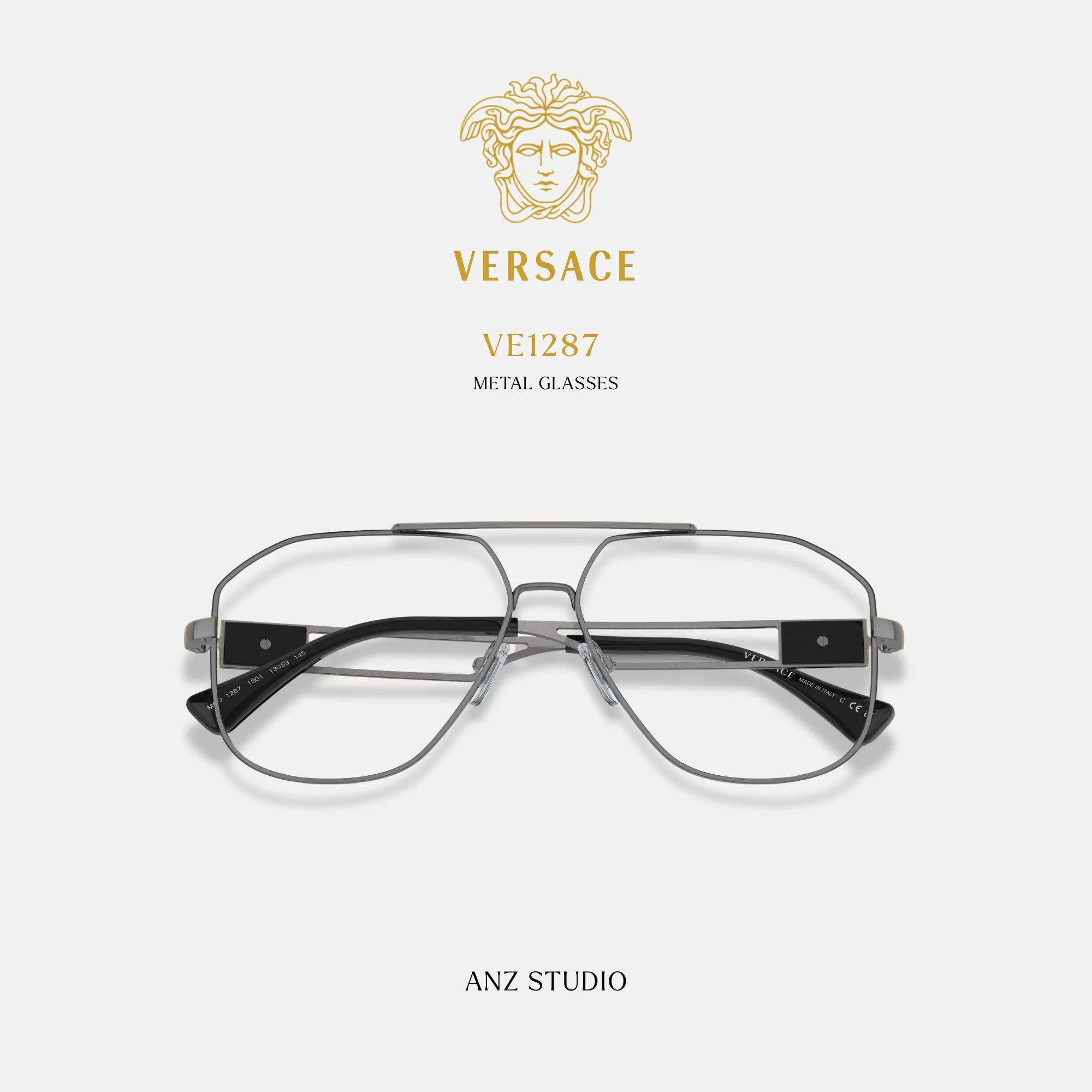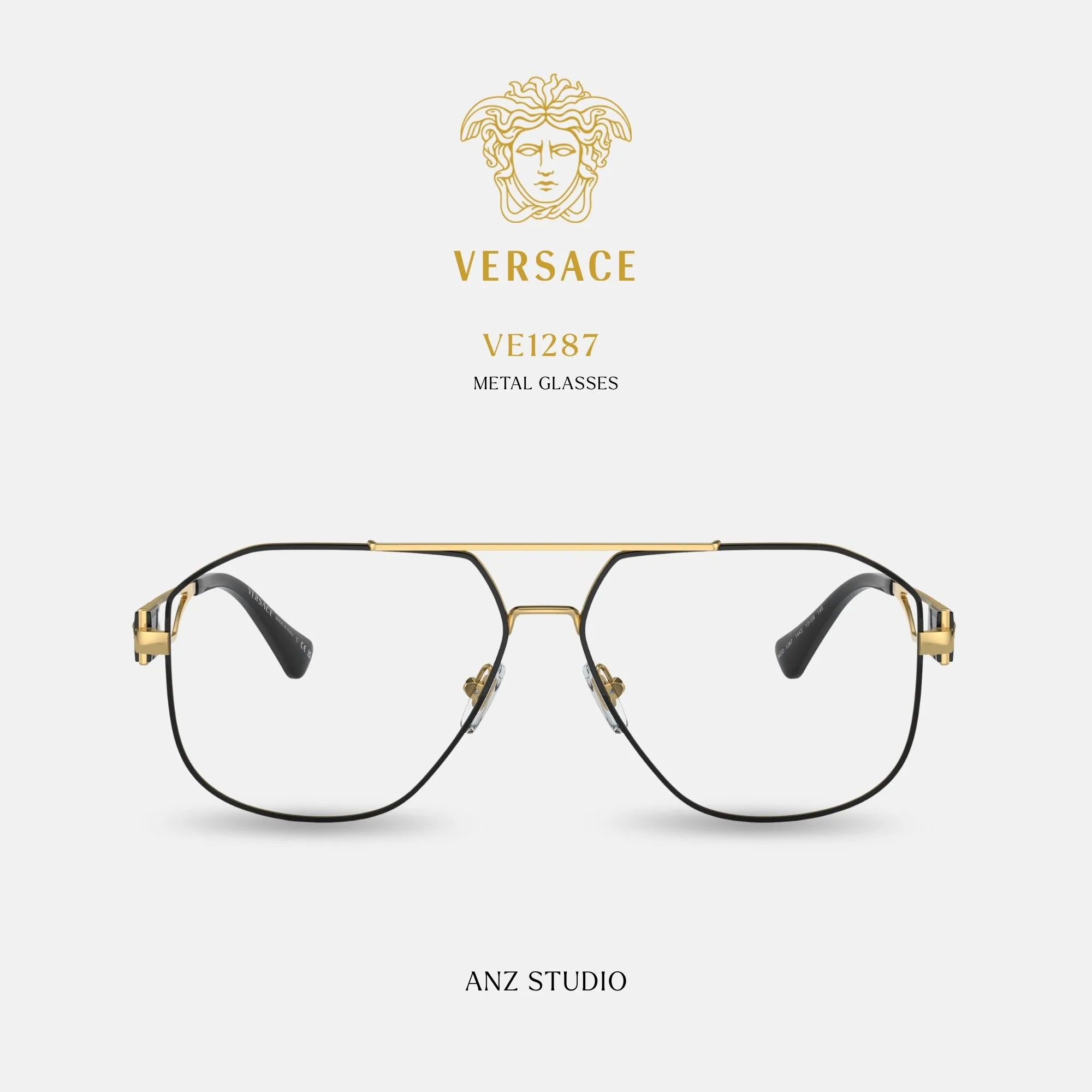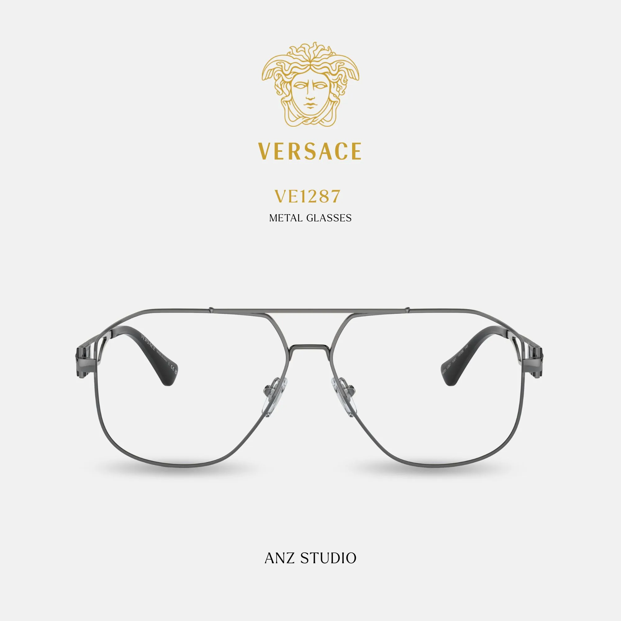 กรอบแว่นตา VERSACE รุ่น VE1287 ทรง Pilot เมดูซ่าสุดหรู ของแท้ รับประกัน 2 ปี